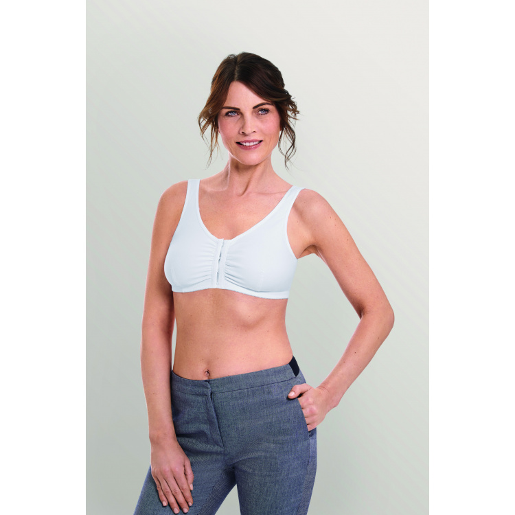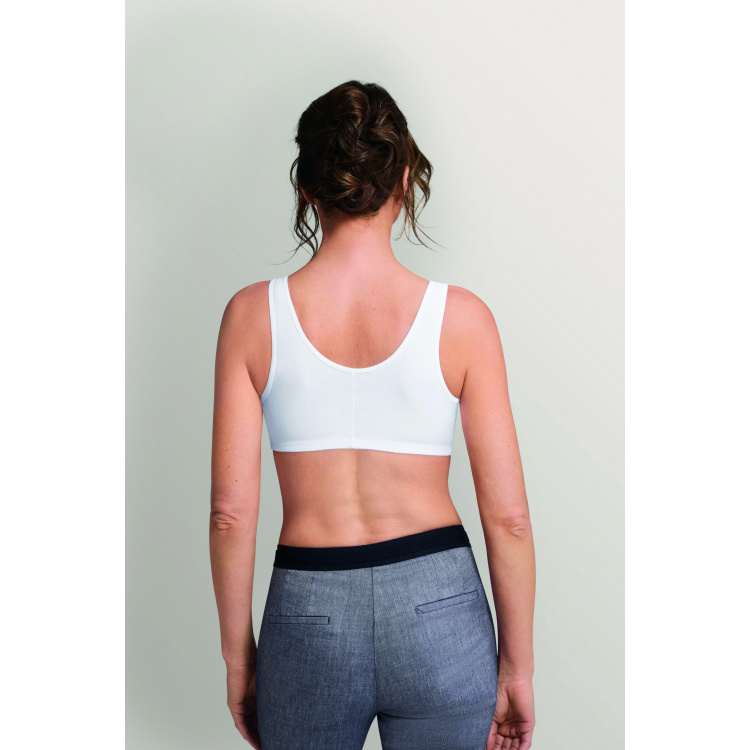 Frances White recipeta ortopedike me xhepa të posaçëm protezash të gjirit nga materiali COOLMAX® që nuk ruan nxehtësinë për rehati më të madhe. Sytjena është e butë, me kupa të lëmuara pa tela të poshtme, dhe ka dantellë në dekolte. Rripat elastikë janë të rregullueshëm për të ofruar mbështetje ideale.